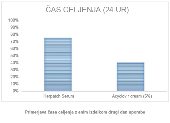 * Klinični preskus izdelka Herpatch Herpes Serum je pokazal, da je bilo 75 % sodelujočih v fazi celjenja herpesa.