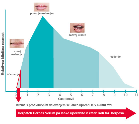- Herpatch Herpes Serum lahko uporabljate na vseh stopnjah herpesa. Priporočljivo ga je uporabiti že ob prvih znakih nastanka.